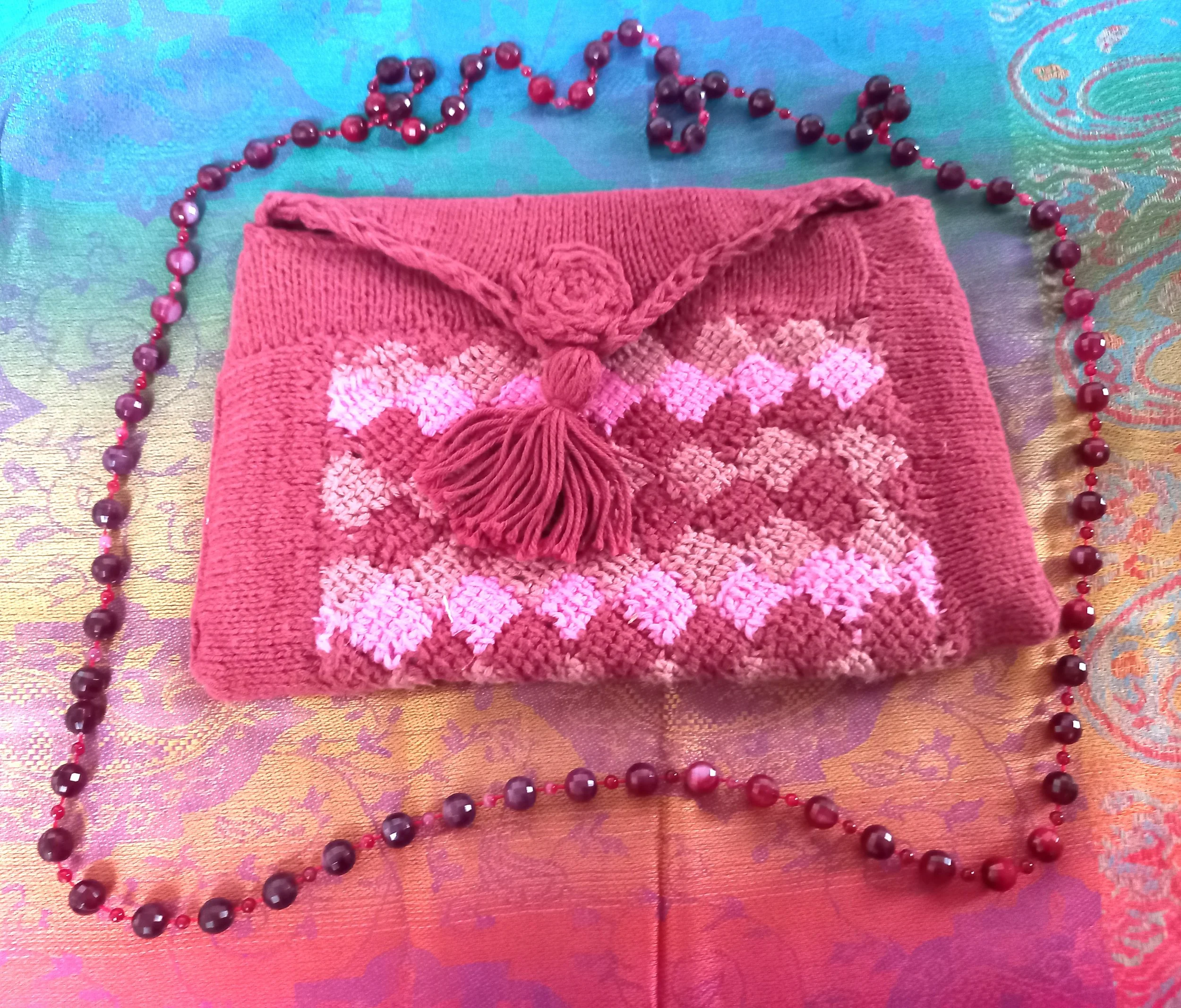 GL19 Deep deep bag will safely hold your prized possessions. Look at the detailed crochet work throughout. What's not to like!